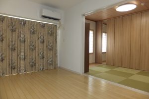 洋室感覚の和室!!ヘリ無し畳に収納取付け